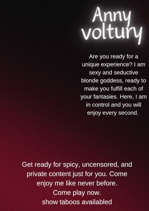 Я Энни❤︎, блондинка с загадочной красотой и стройной фигурой, которая скрывает неотразимые секреты. Мое доминирующее отношение и мой пронзительный взгляд окутают вас аурой таинственности, в то время как моя чувственность медленно раскрывается, приглашая вас исследовать каждый уголок меня. Я открыта для исследования всех фантазий, которые вы можете себе представить; нет никаких ограничений, когда дело доходит до исполнения ваших самых сокровенных желаний. Мое присутствие гипнотизирует, и я готова войти в запретную территорию, чтобы вы пережили интенсивный и уникальный опыт.